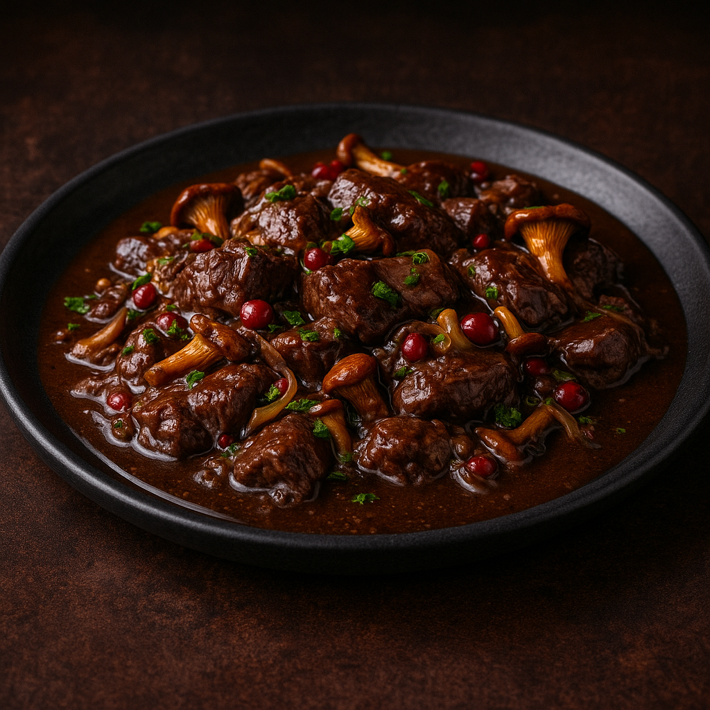 Kräftiges Wildragout mit Preiselbeeren und Pfifferlingen – ein echter Festtagsklassiker